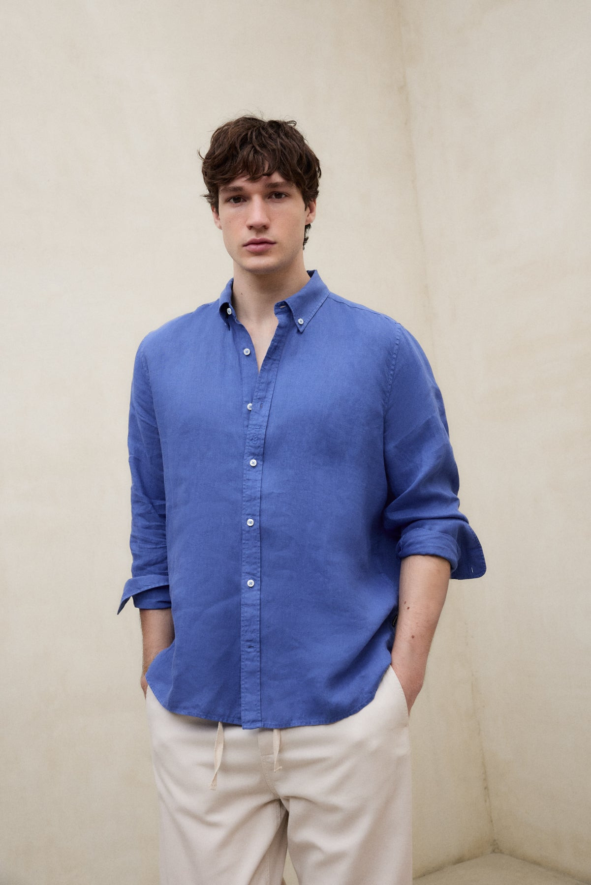 Camisa ECOALF MALIBU azul pacific blue de lino,manga larga de hombre