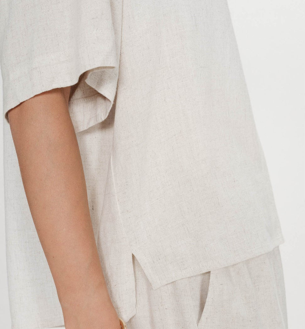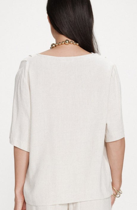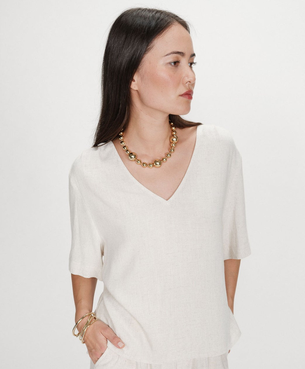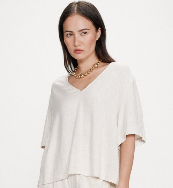 Top con escote en pico y manga corta hecho en viscosa y lino modelo violon