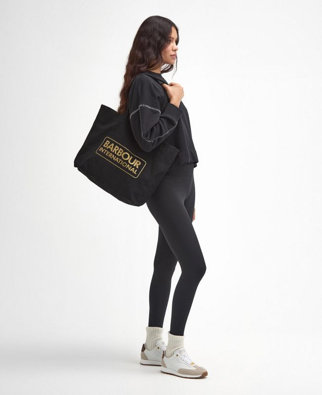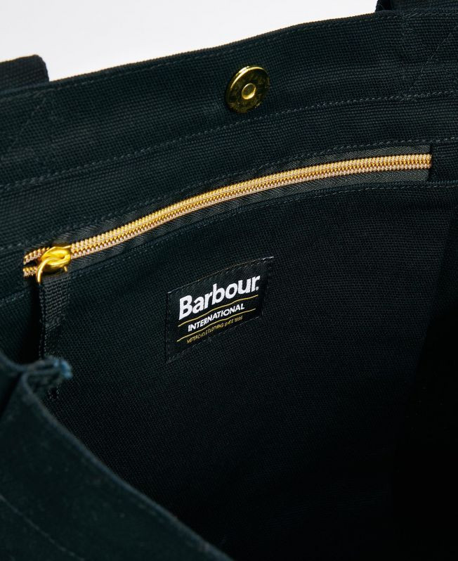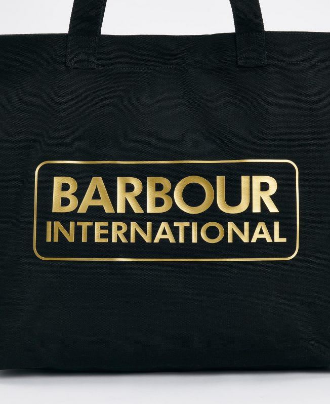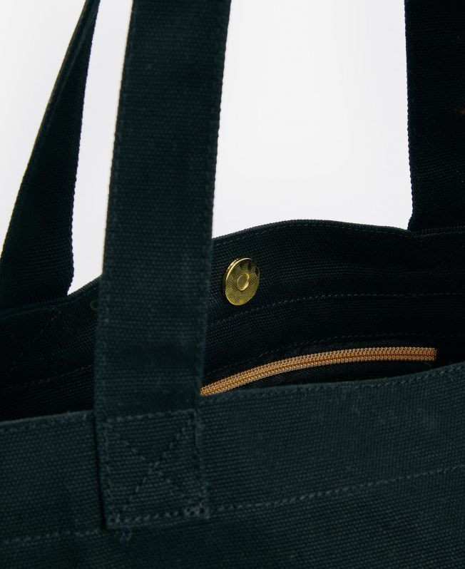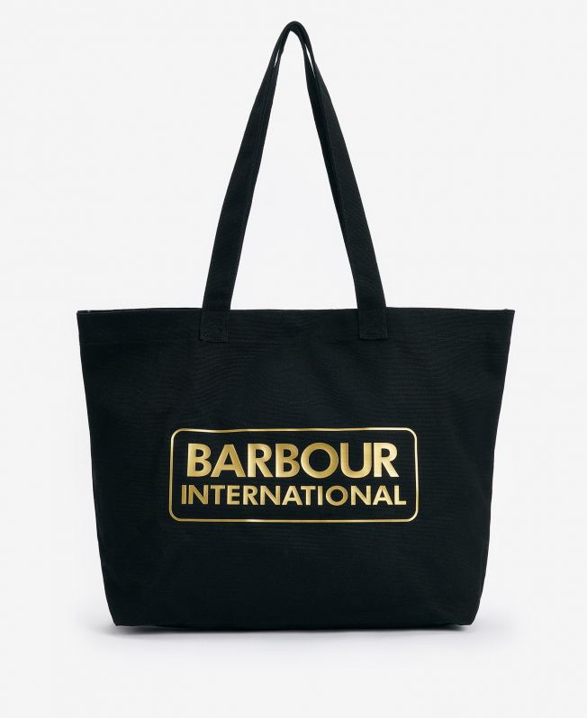 Bolso Barbour negro con logo en dorado. Essential tote bag