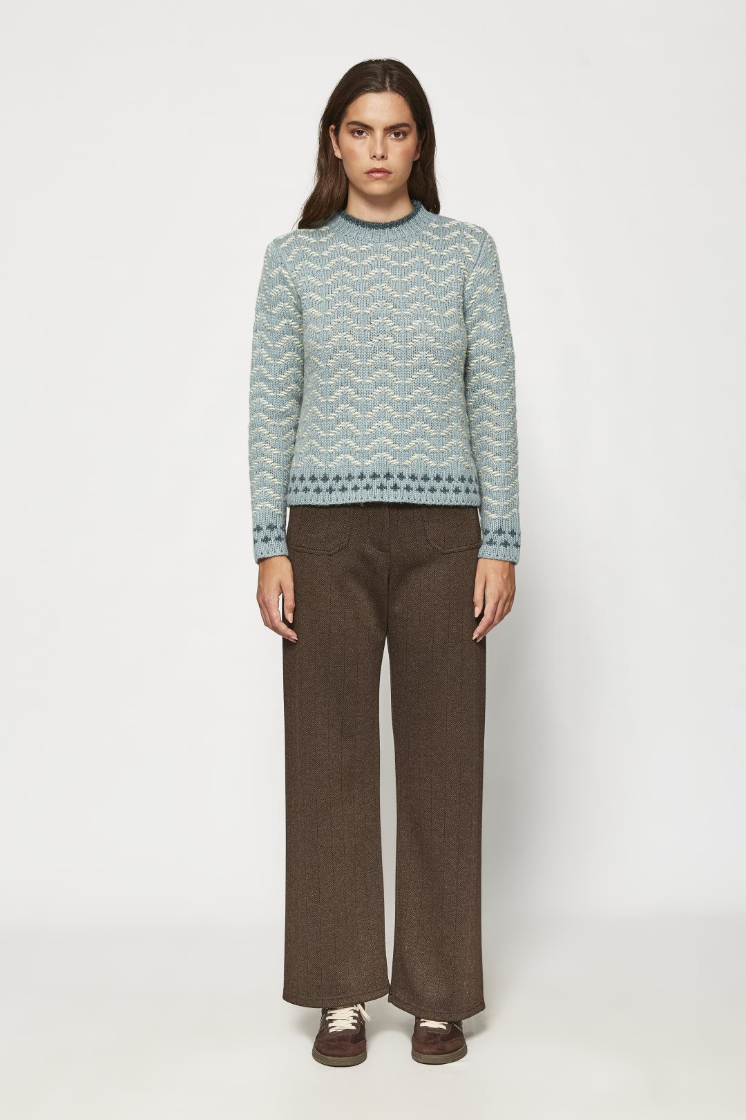 Jersey zic zac cuello redondo de mujer. Hecho en acrílico y lana.