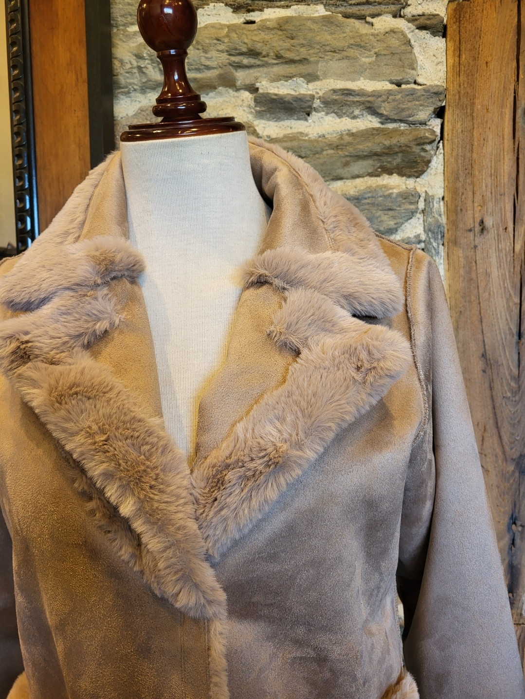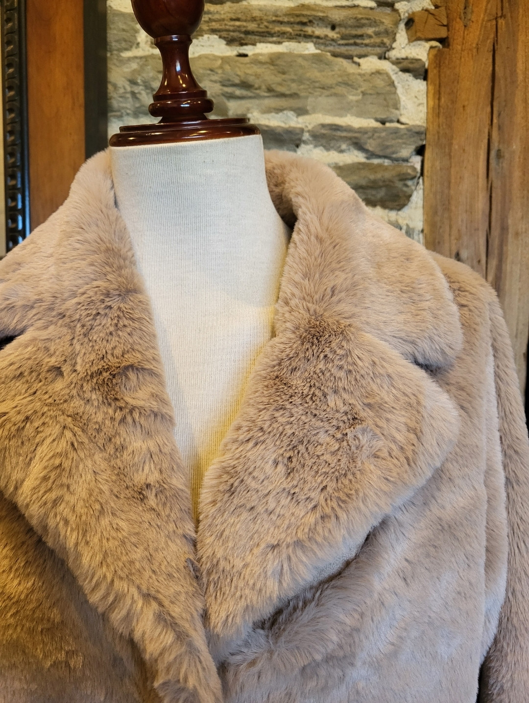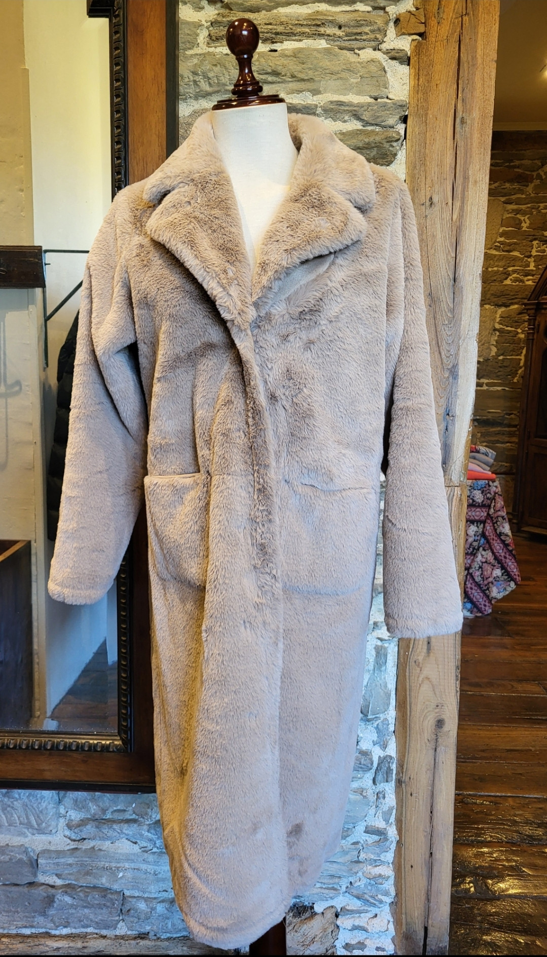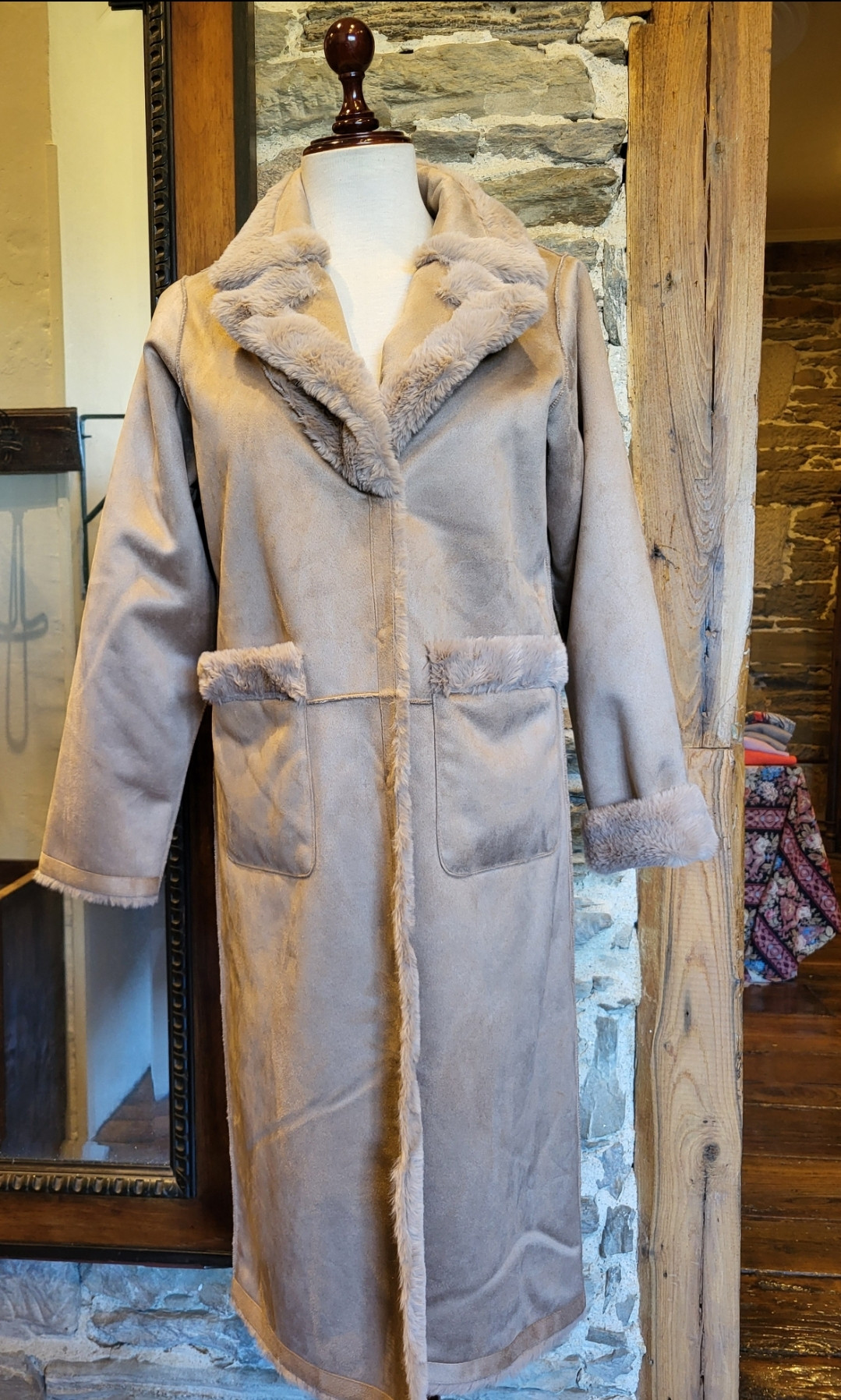 Abrigo reversible largo piel ecológica.