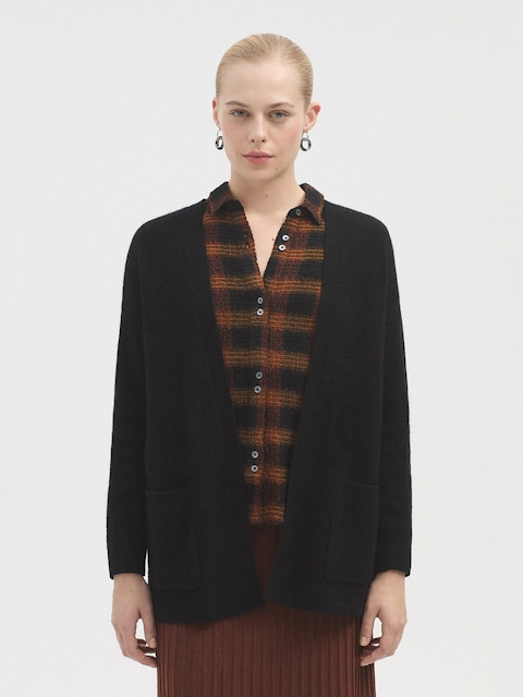 Chaqueta Nice Things negra abierta con 2 bolsillos de mujer. WKY020.