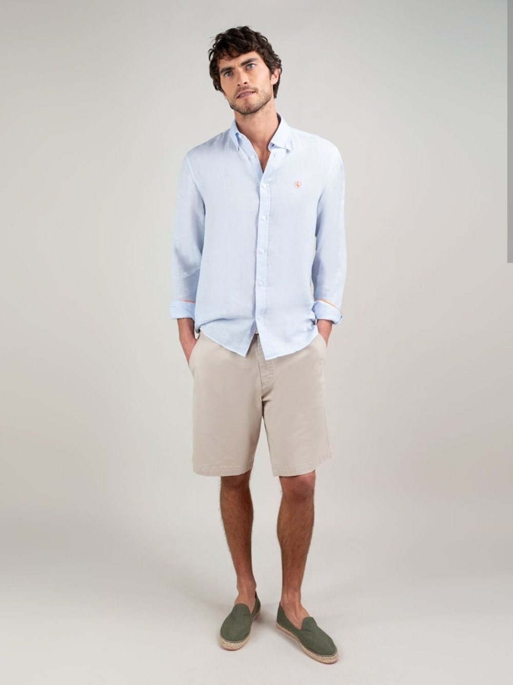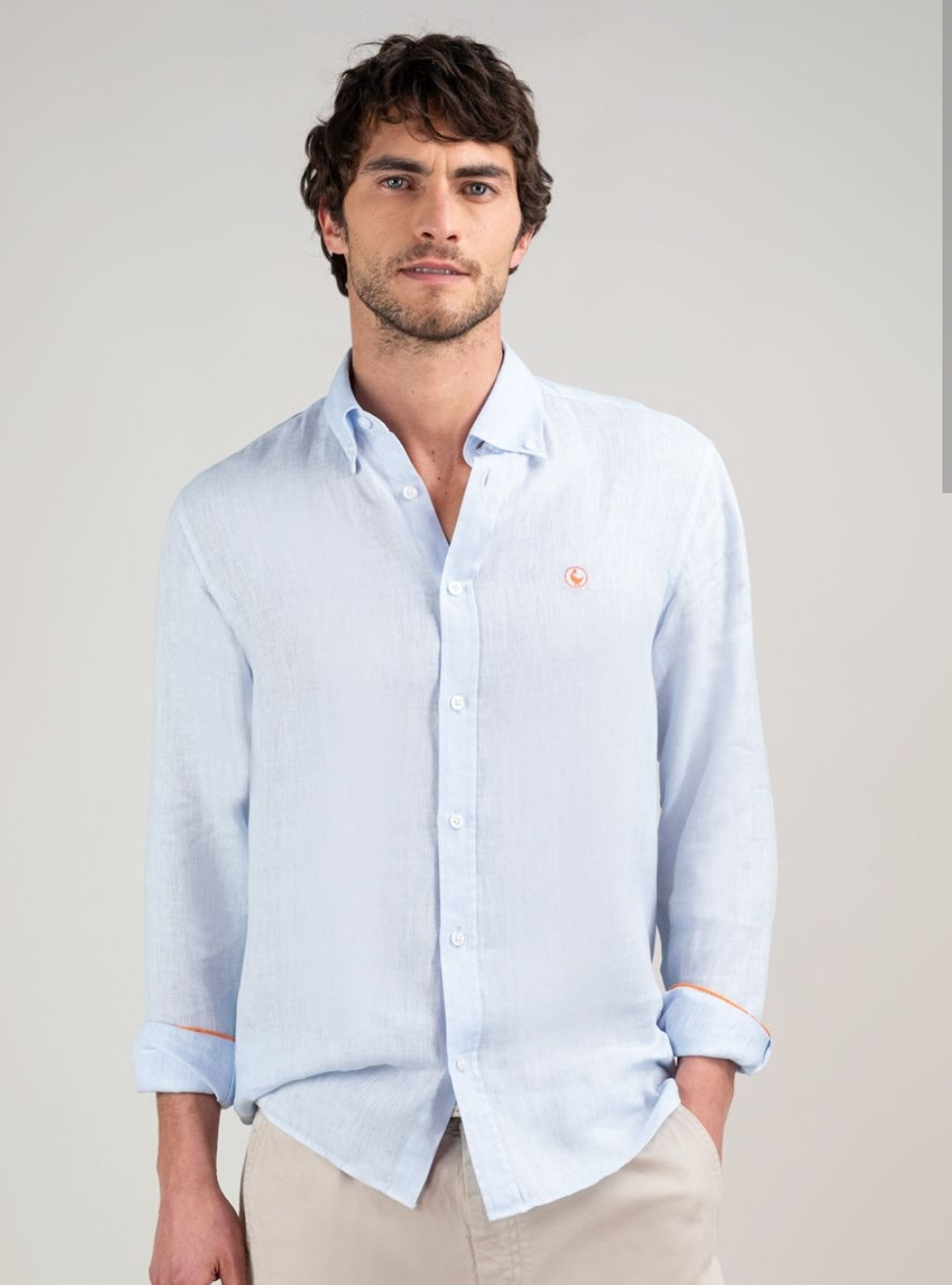 Camisa EL GANSO de lino azul claro de hombre de manga larga.