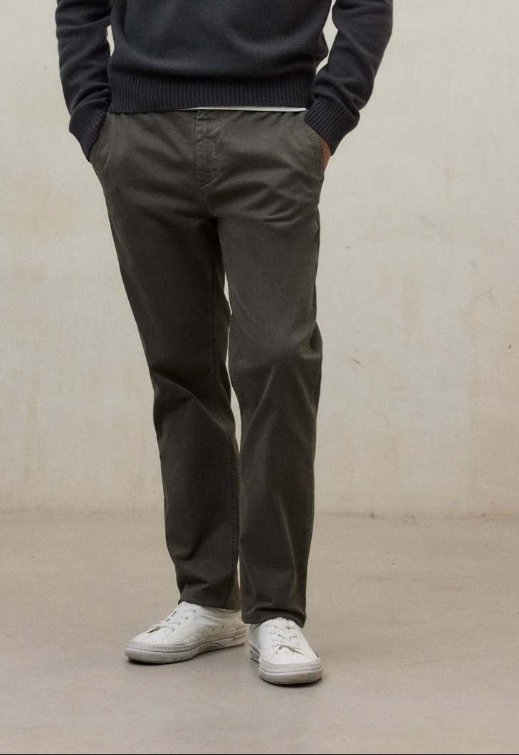 Pantalón ECOALF ETHIWIN color asteroid verde con cintura elástica en la parte trasera, hecho con algodón regenerativo, algodón reciclado y elastán.