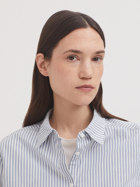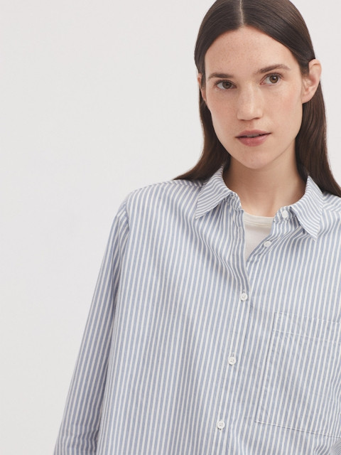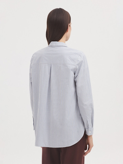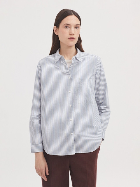 Camisa Nice Things de rayas azul, hecha en algodón 100%,de manga larga de mujer. WWV109.