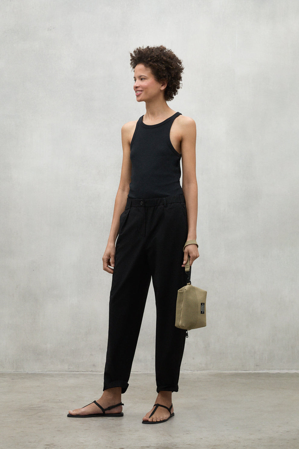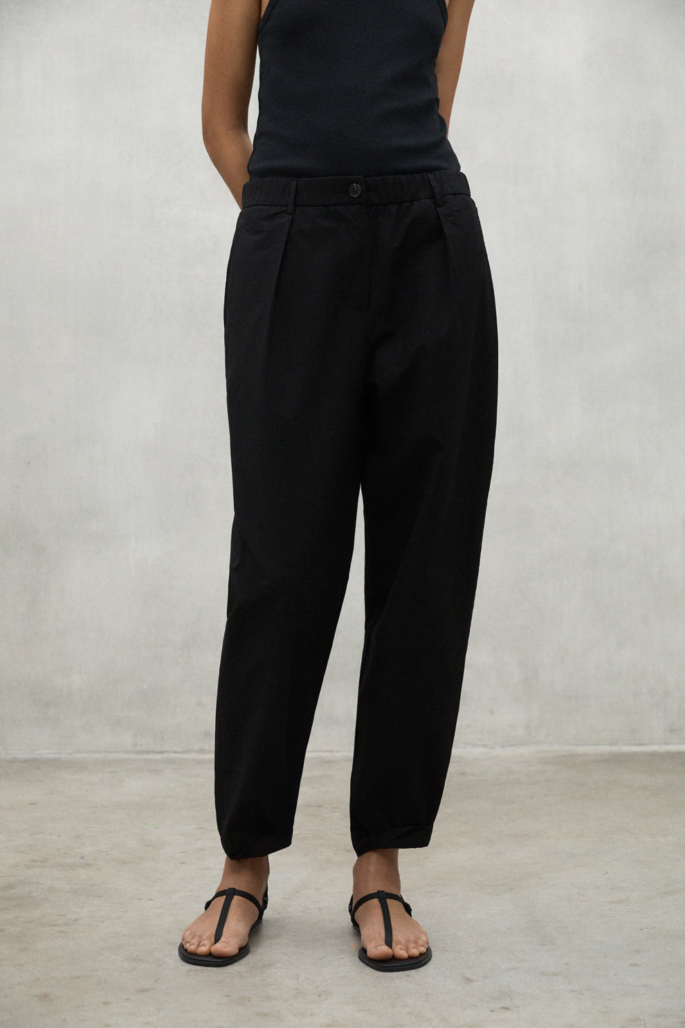 Pantalón ECOALF GALA negro de mujer hecho en algodón orgánico y tencel con cintura elástica.