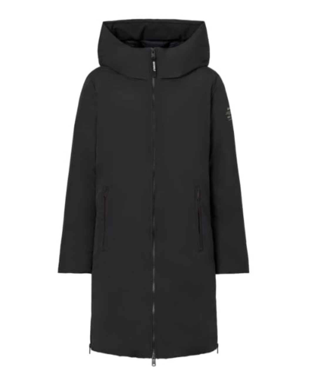 ECOALF MATI JACKET BLACK de mujer, color negro, con capucha y cremalleras laterales.