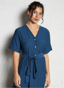 Vestido Nice Things verde con manga corta, cierre con botones y cuello camisero,hecho en algodón y viscosa.